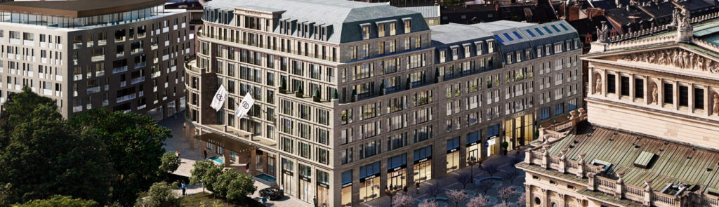Klassische Materialien und Stilelemente werden aufgenommen und eigenständig interpretiert. So zeigt die Natursteinfassade in ihrer Aufteilung einen historischen Charakter, erlaubt jedoch mit bodentiefen Fenstern großzügige Ausblicke.